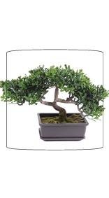 Hauteur : 22 cm Largeur : 33 cm Couleur : VERT Tronc : RESINE Feuillage : PLASTIQUE Pot d origine : COUPE Univers : INTERIEUR/EXTERIEUR Le bonsaï Thé artificiel d
