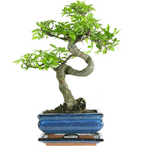 7 ans Orme de Chine dans un pot de bonsaï émaillé. Cet bonsaï arbre est environ 32cm de haut et nous le livrons avec une soucoupe emaillée.L'orme chinois (botanique Ulmus