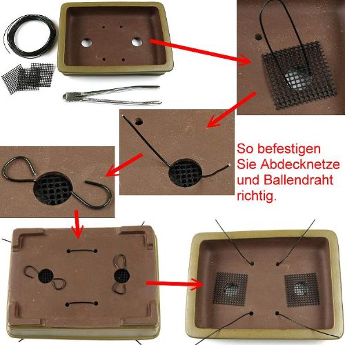 En plus des orifices de drainage d’eau obligatoires les orifices supplémentaires pour fixer la boule de racine sont disponibles dans le fond du pot.