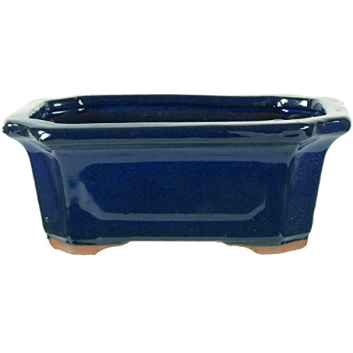 Pot à bonsaï 15.5x12x6cm bleu rectangulaire en grès émaillé
