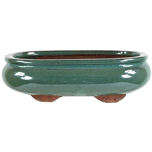 Pot à bonsaï (en grès émaillé, vert, ovale) avec la dimensions extérieures de: 15cm Longueur, 10.5cm Largeur, 4.5cm Hauteur. La qualité standard a fait dans la célèbre poterie ville Yixing.