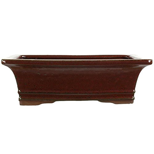 Pot à bonsaï (en grès émaillé, rouge, rectangulaire) avec la dimensions extérieures de: 29cm Longueur, 22.5cm Largeur, 8cm Hauteur. La qualité standard a fait dans la célèbre poterie ville Yixing.
